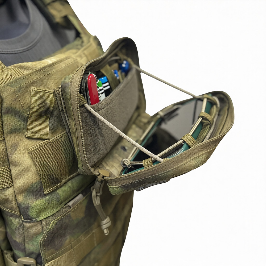 Учитывая важность продолжительного функционирования всех подключаемых гаджетов, наличие дополнительных источников питания становится необходимым условием успешного выполнения заданий вдали от баз отдыха. Таким образом, данный подсумок помогает обеспечить необходимую организацию и защиту ключевых элементов электронной техники и энергоснабжения, существенно облегчая выполнение оперативных задач нашим военнослужащим.